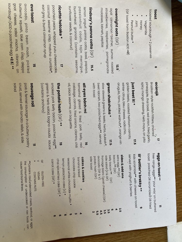 Toasted sourdough and butter with your choice of preserves: vegemite, honey, house made jam, peanut butter (GF available)