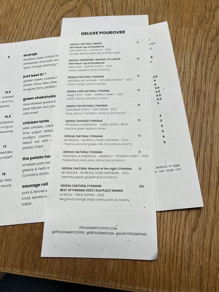 Introducing the menu at Proud Mary Coffee, located in Portland, Oregon, offers a variety of coffee flavors, including the popular Matcha Latte. The brunch menu is a standout with dishes like ricotta hotcakes with perfectly balanced flavors of sweetness, bitterness, and savory crunch. The coffee roast and bean selection are amazing, with detailed information provided about their specialty beans. The atmosphere at Proud Mary is bustling and trendy, with indoor and outdoor seating options. The food is well-crafted and elaborate, with dishes like shakshuka, avocado toast, and beet salad standing out for their delicious flavors and textures. Overall, Proud Mary Coffee offers a unique dining experience with excellent coffee, delightful pastries, and a top-notch brunch selection.